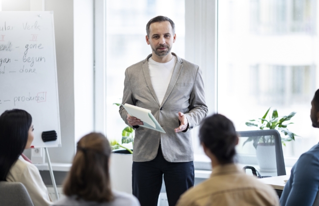 As nossas formações são práticas, dinâmicas e desenhadas para criar impacto real. Apostamos no desenvolvimento de competências essenciais para o sucesso individual e das equipas, sempre com foco na aplicação direta ao dia-a-dia das empresas e dos profissionais.